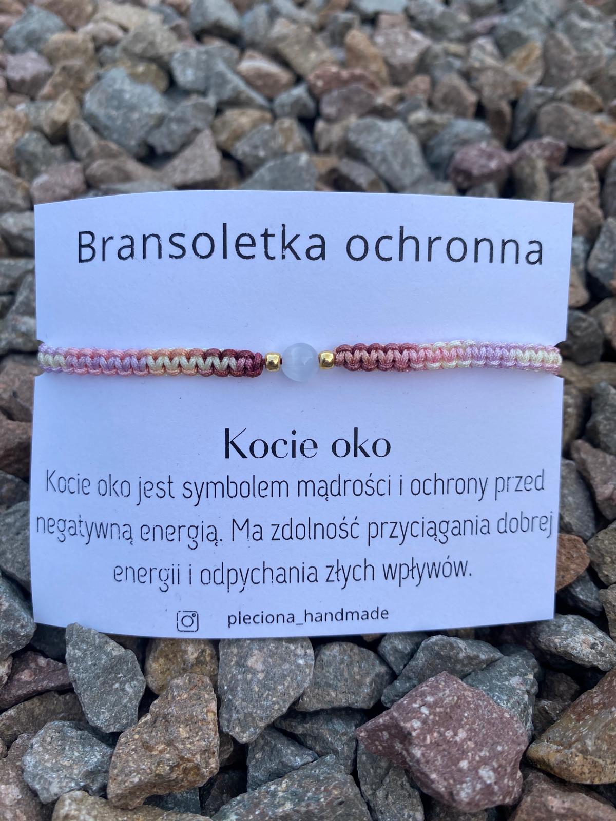 Ręcznie pleciona, regulowana bransoletka z kamieniem naturalnym Kocie Oko.