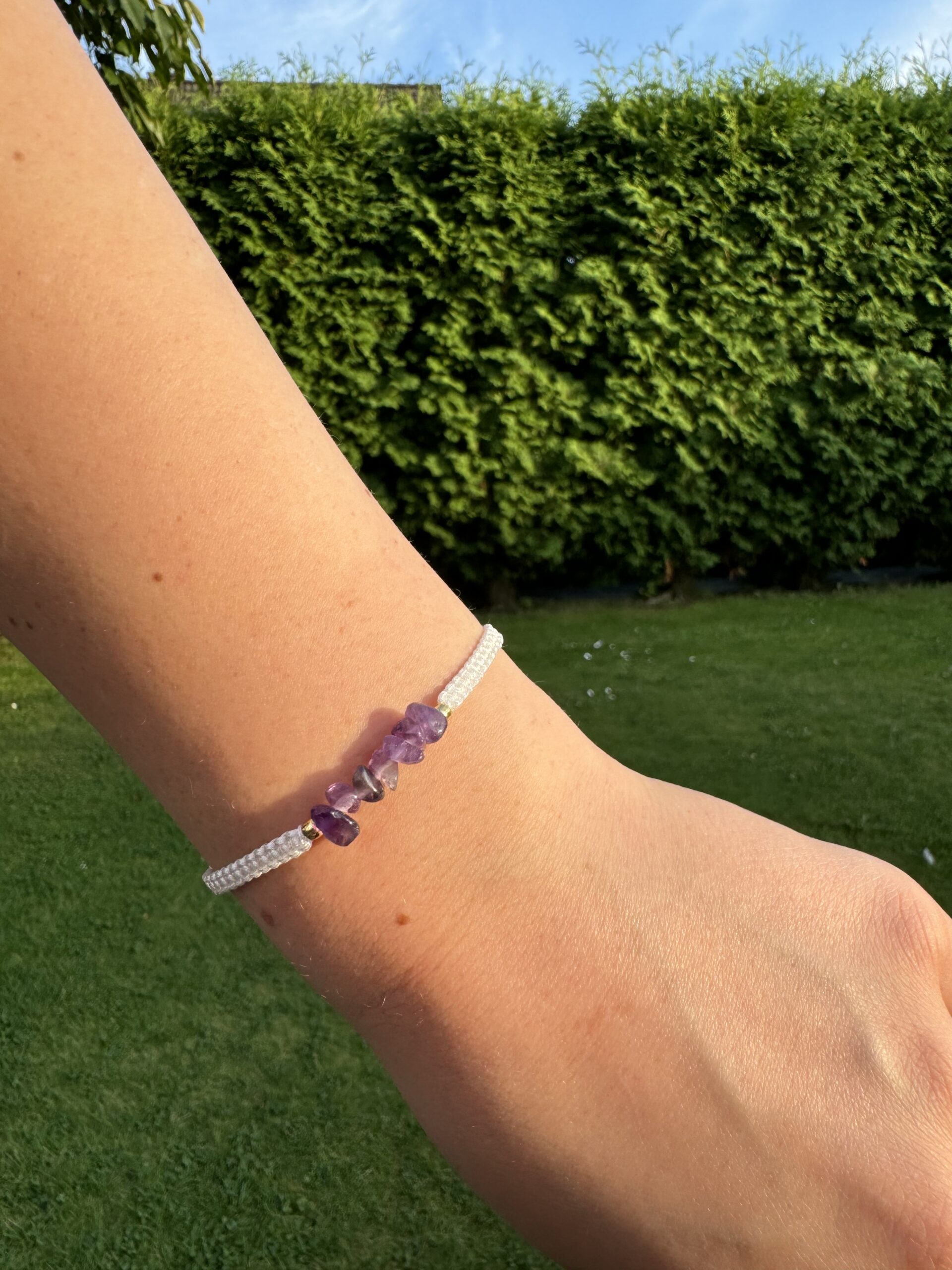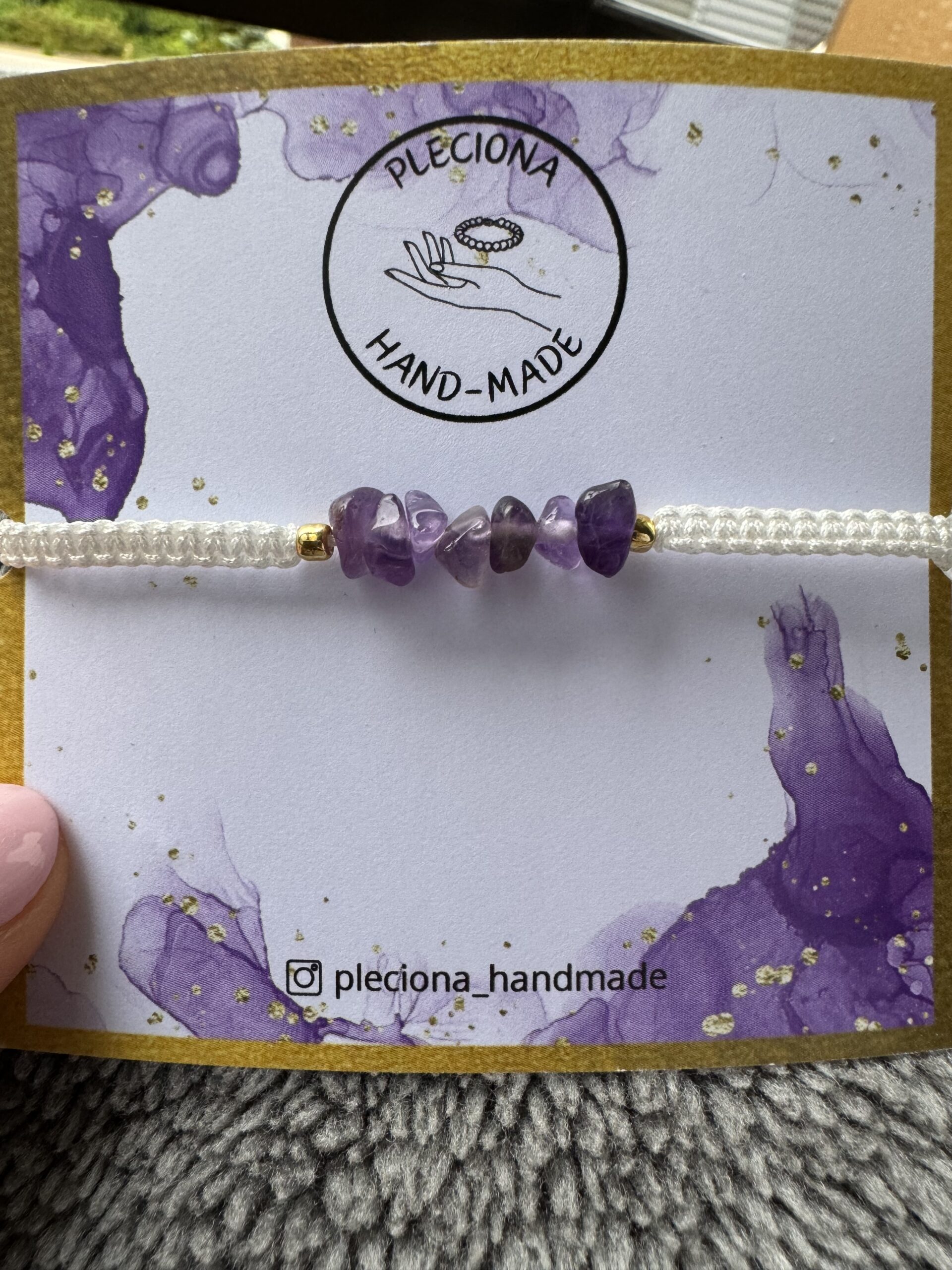 Regulowana bransoletka z nieregularnymi kamieniami Ametystu.