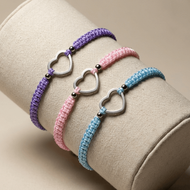 Dodaj subtelnego blasku swoim stylizacjom dzięki bransoletce Silver Heart wykonanej ze stali chirurgicznej. To ręcznie robiona, minimalistyczna biżuteria, która zachwyca delikatnym serduszkiem i możliwością wyboru koloru sznurka. Bransoletka jest trwała, hipoalergiczna i odporna na codzienne użytkowanie – idealna zarówno na co dzień, jak i na prezent dla bliskiej osoby.