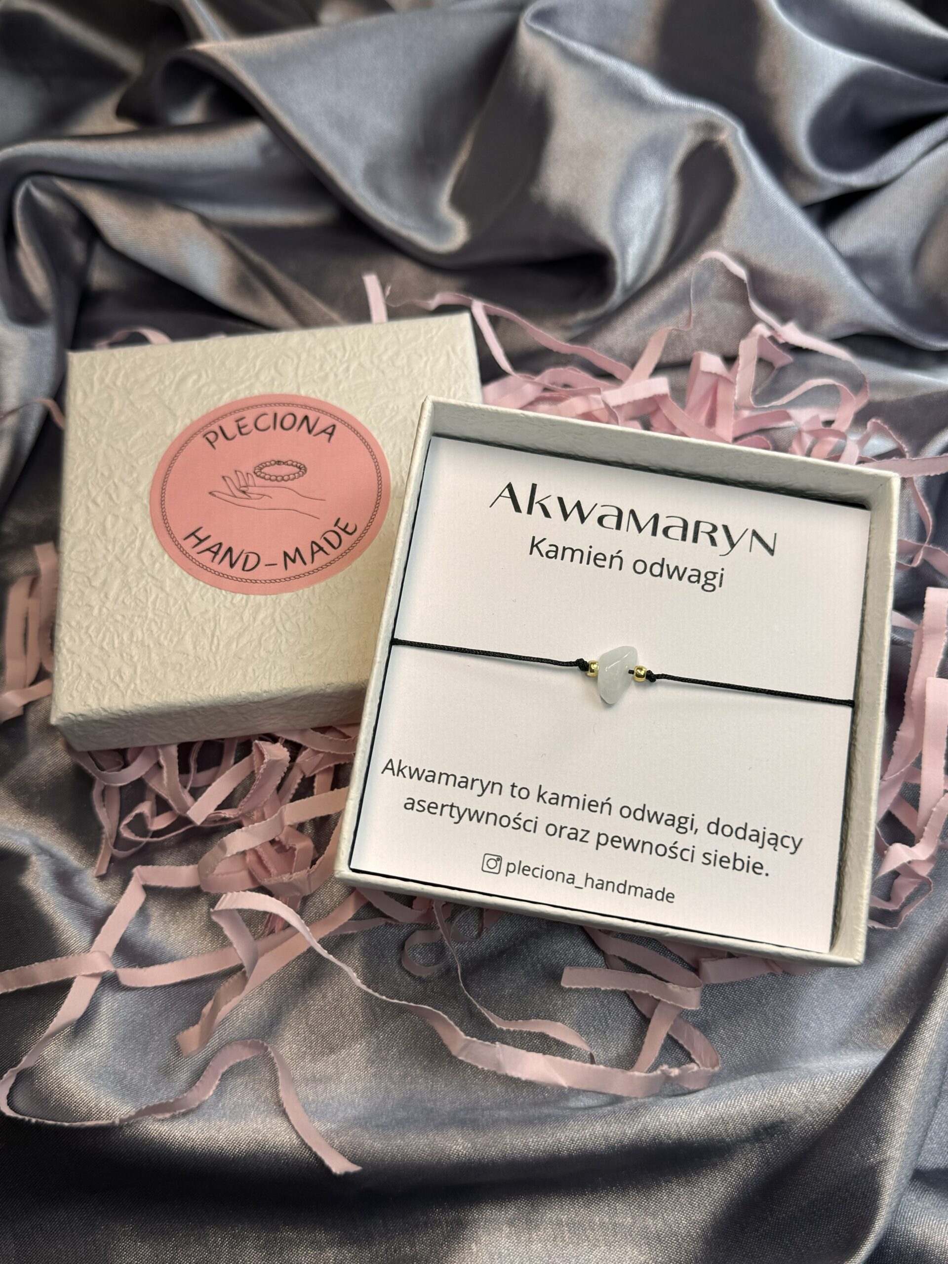 Każda bransoletka jest unikatowa – naturalny akwamaryn może różnić się odcieniem i strukturą, co czyni ją wyjątkowym upominkiem dla bliskiej osoby lub samego siebie.