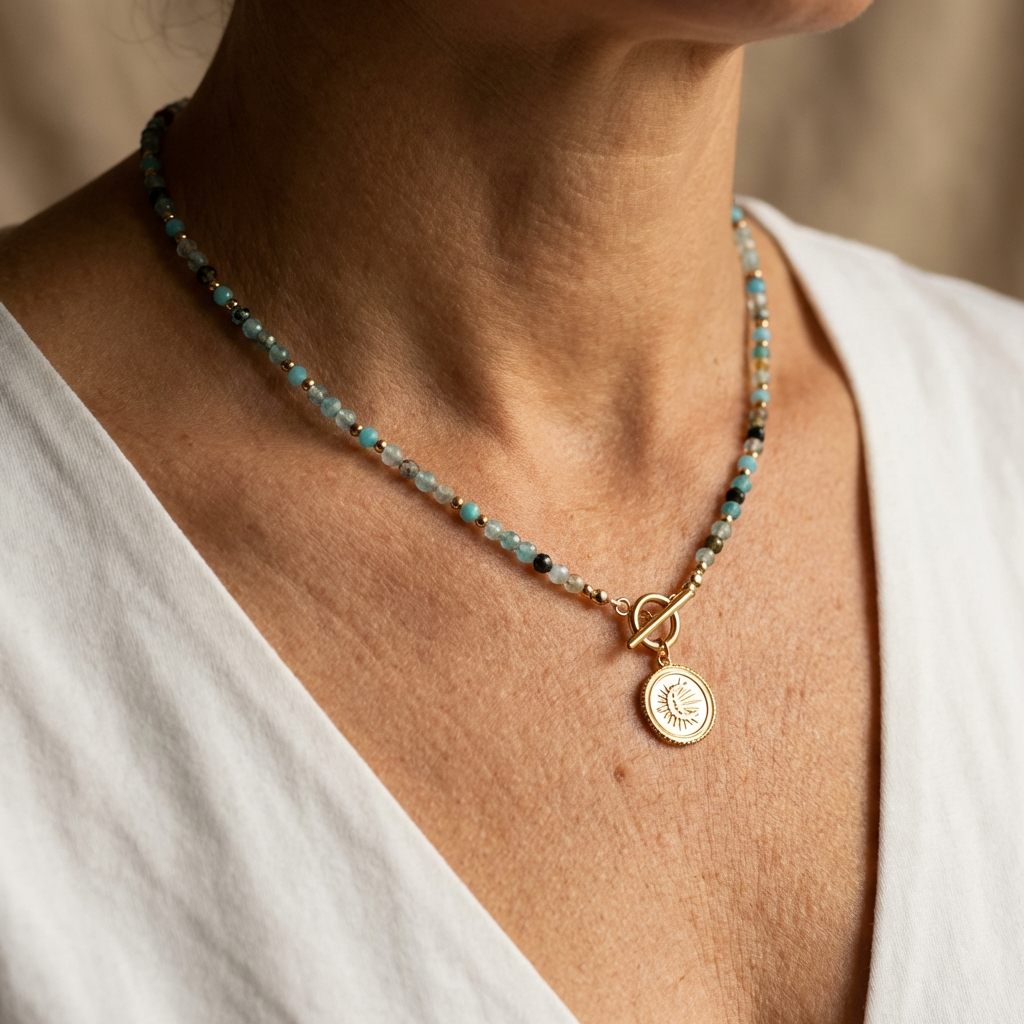 Naszyjnik Akwamaryn Moon ze stali chirurgicznej to ponadczasowa biżuteria, która podkreśli Twoją indywidualność i doda blasku każdemu dniu. Zamów już dziś i poczuj moc naturalnych kamieni!