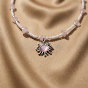 Szklane kryształki pięknie odbijają światło, a różowe serduszko dodaje biżuterii romantycznego i delikatnego charakteru. Minimalistyczny, a zarazem efektowny design sprawia, że naszyjnik doskonale sprawdzi się zarówno na co dzień, jak i na wyjątkowe okazje. To także świetny pomysł na prezent – naszyjnik zapakowany jest w eleganckie pudełko, gotowe do wręczenia bliskiej osobie.