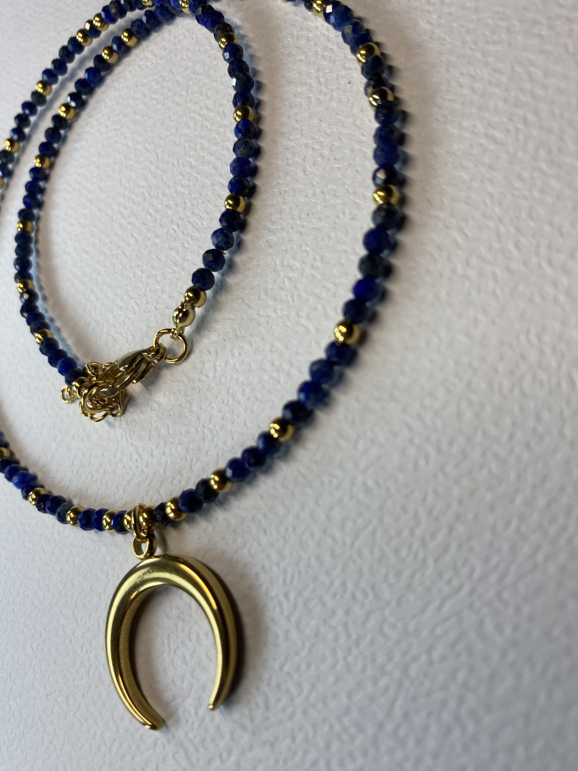 Naszyjnik Lapis Lazuli Lanula to wyjątkowa propozycja dla miłośniczek biżuterii handmade inspirowanej słowiańską tradycją. Ręcznie wykonany z naturalnego lapis lazuli oraz zawieszki w kształcie lunuli (półksiężyca), symbolizuje kobiecą siłę, ochronę i harmonię. Intensywnie niebieski kamień lapis lazuli od wieków uważany jest za talizman mądrości, odwagi i szczęścia.