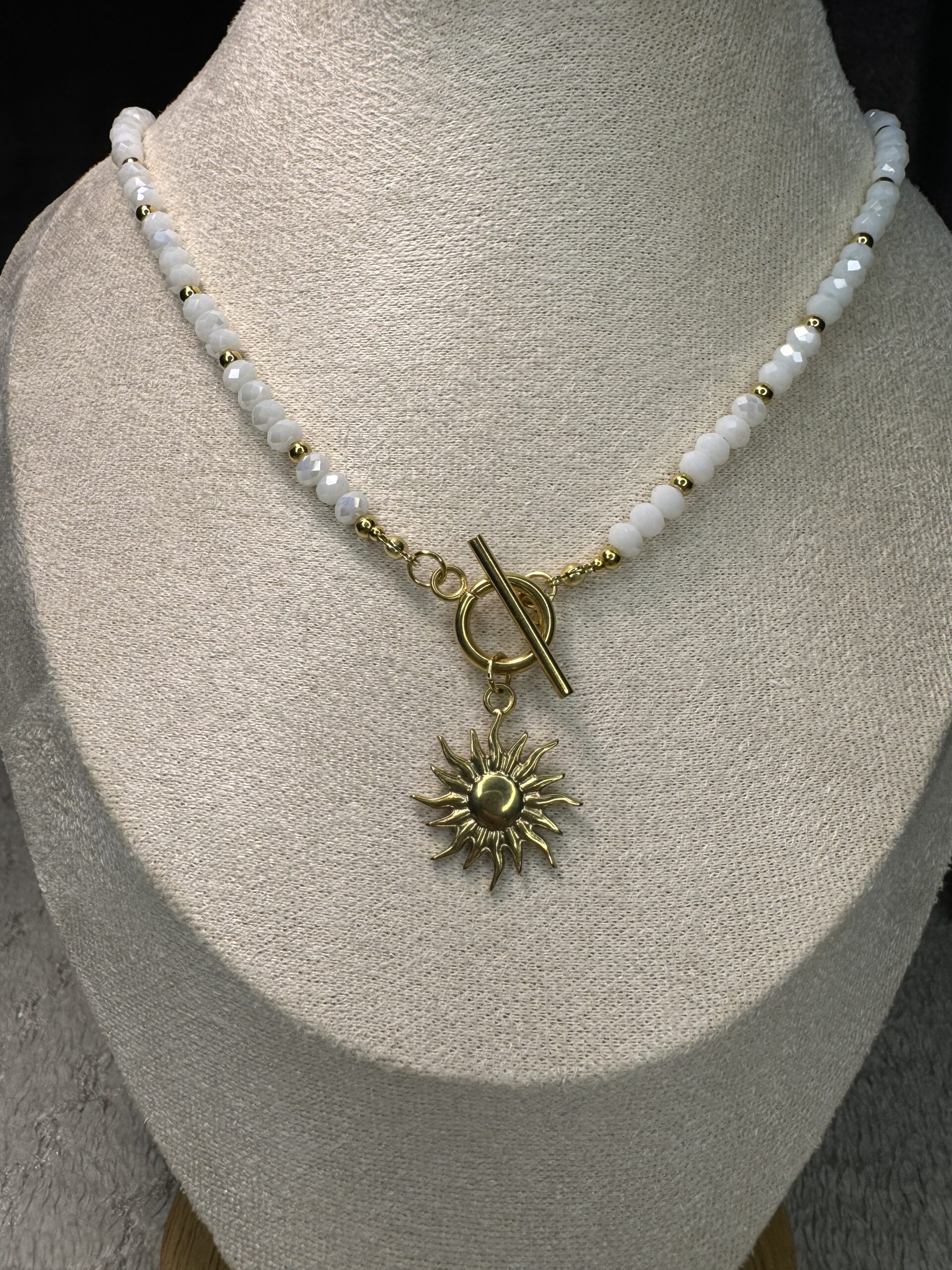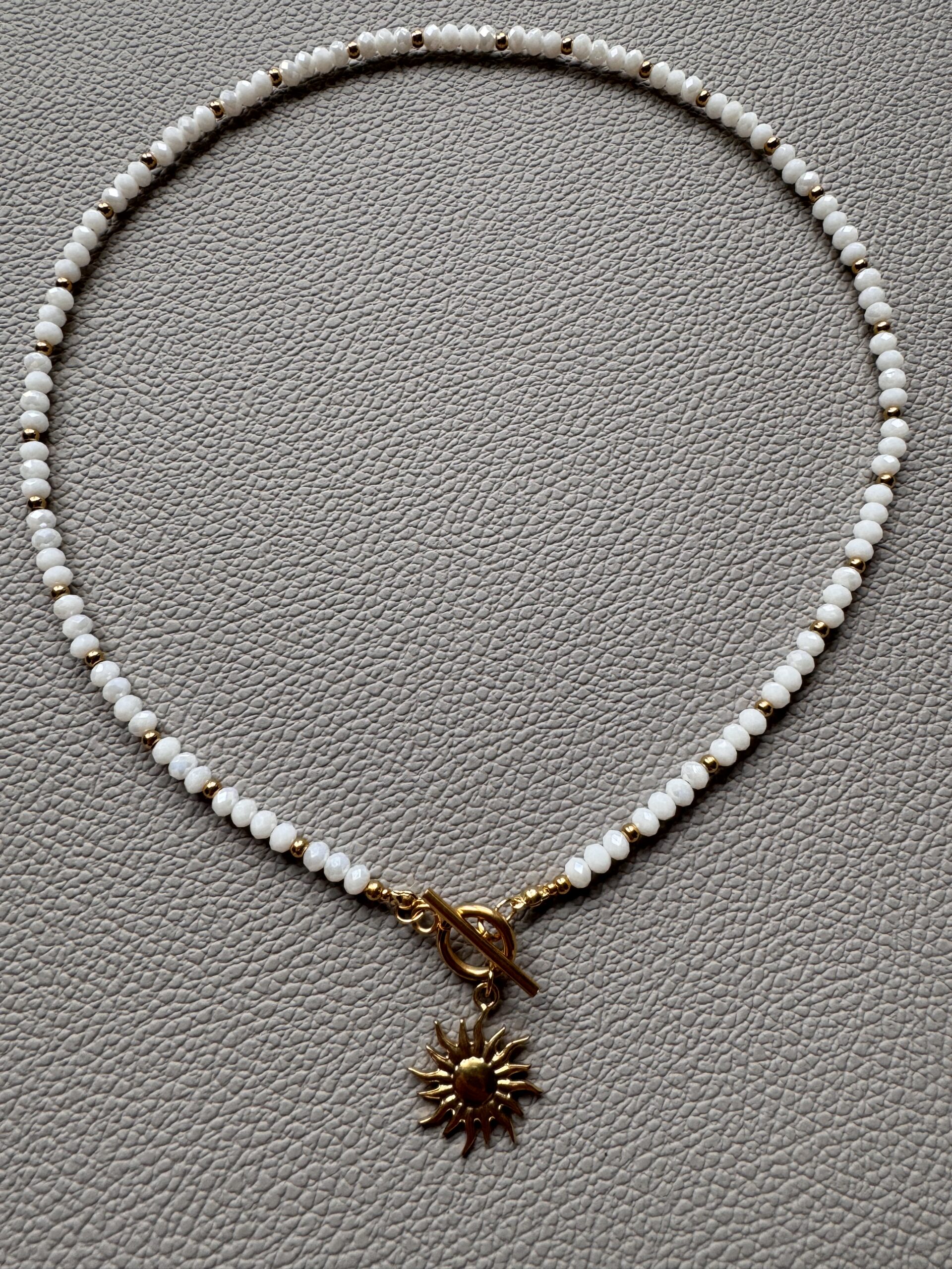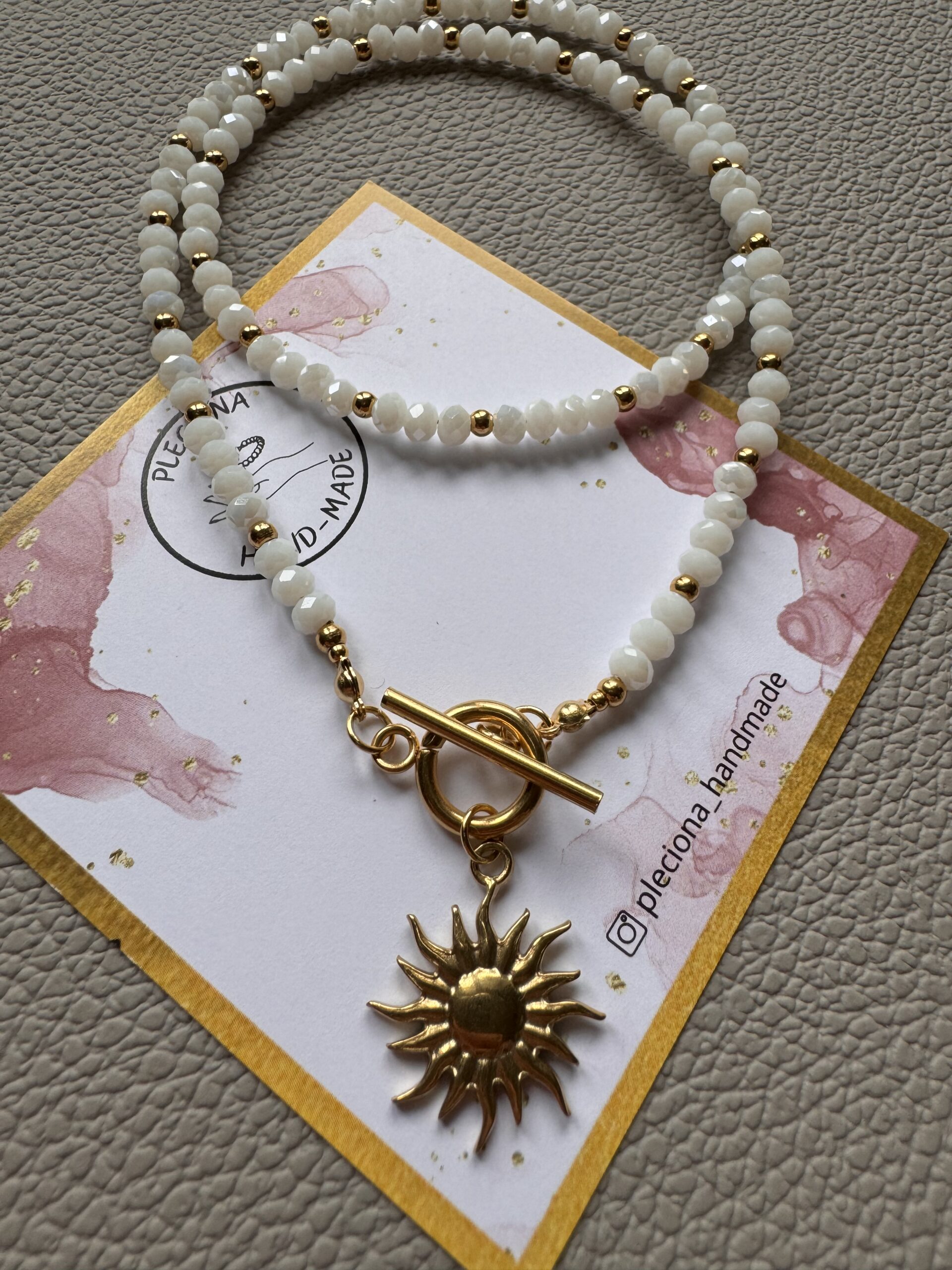 Naszyjnik White Crystal stal chirurgiczna to elegancki, ręcznie wykonany dodatek, który zachwyca subtelnym blaskiem szklanych, białych kryształków. Kryształki pięknie odbijają światło, rozświetlając każdą stylizację i nadając jej wyjątkowej lekkości. Minimalistyczny, ponadczasowy design sprawia, że naszyjnik doskonale sprawdzi się zarówno na co dzień, jak i na wyjątkowe okazje.