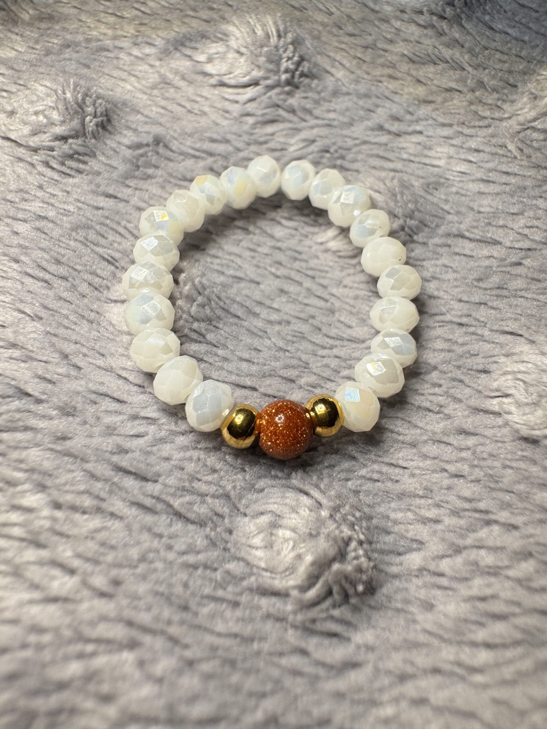 Materiał: kamień Piasek Pustyni, elastyczna gumka jubilerska, stal chirurgiczna, kryształki