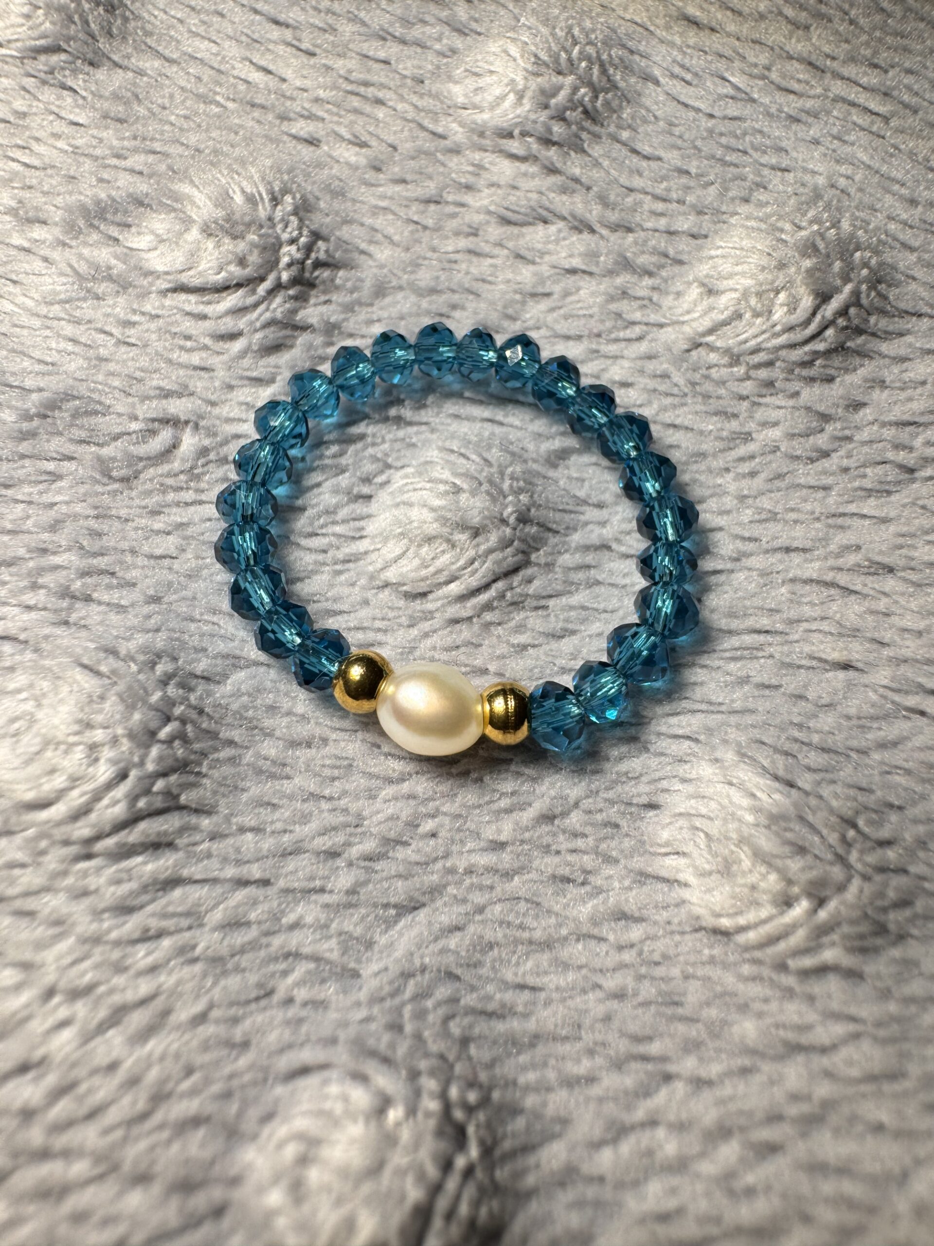 Materiał: naturalna perła, turkusowe kryształki, elastyczna gumka jubilerska