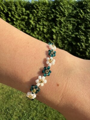 • Bransoletka Daisy Kwiatuszki szmaragdowo-biała