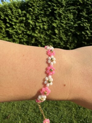 • Bransoletka Daisy Kwiatuszki różowo-biała