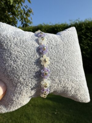• Bransoletka Daisy Kwiatuszki fioletowo-kremowa