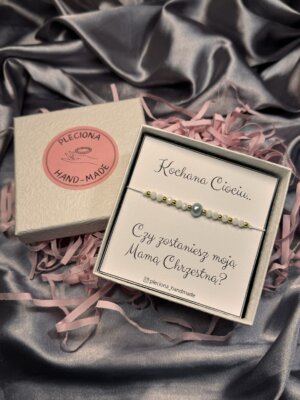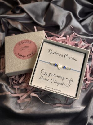 • Bransoletka (niebieska) dla chrzestnej, serduszko z masy perłowej
